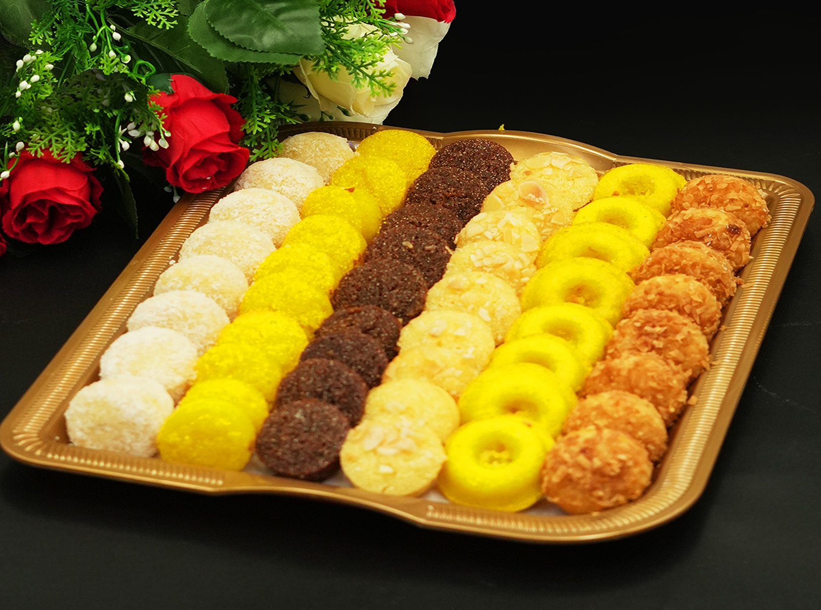 مجموعة متنوعة من الكيك في طبق واحد