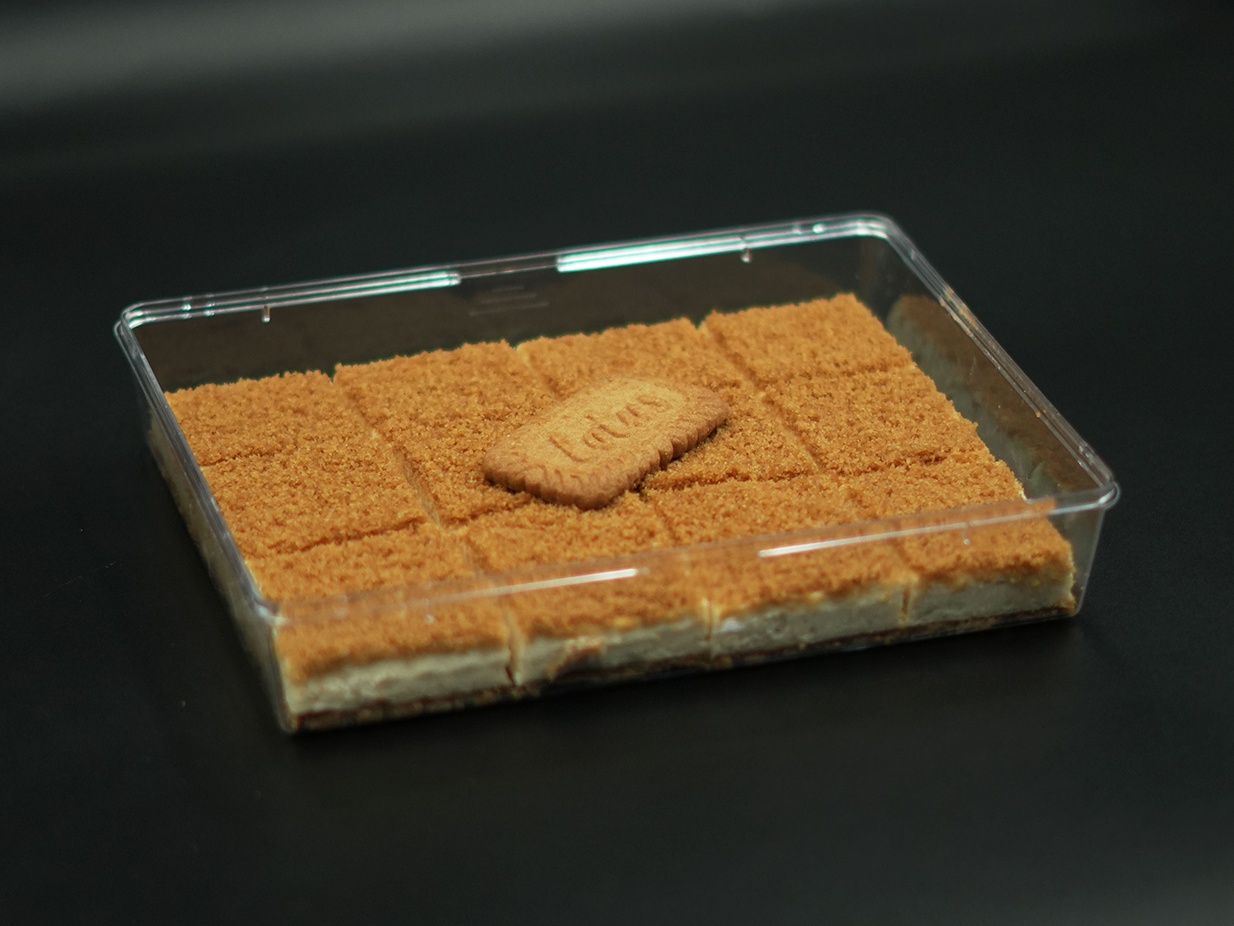 A rich cheese cake topped with Lotus-flavored cream.