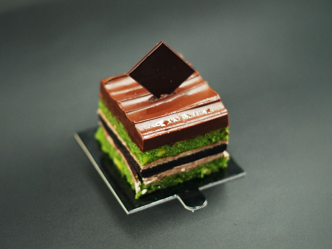 Pastry filled with pistachio and Nutella spread.