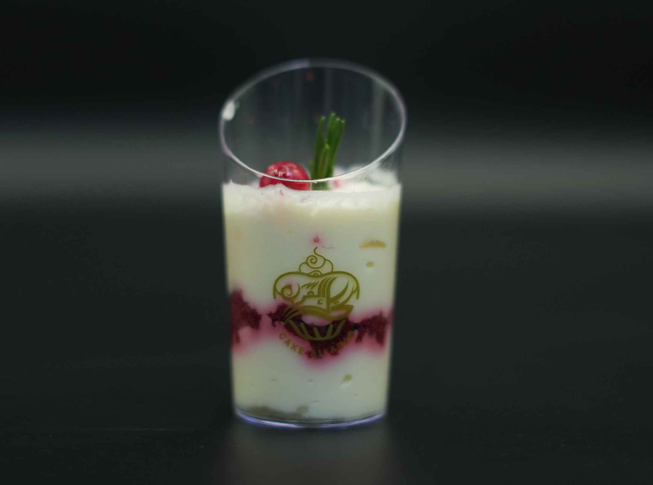 كاسة حلى بطبقات من كعكة الرد فلفت وكريمة الجبن.