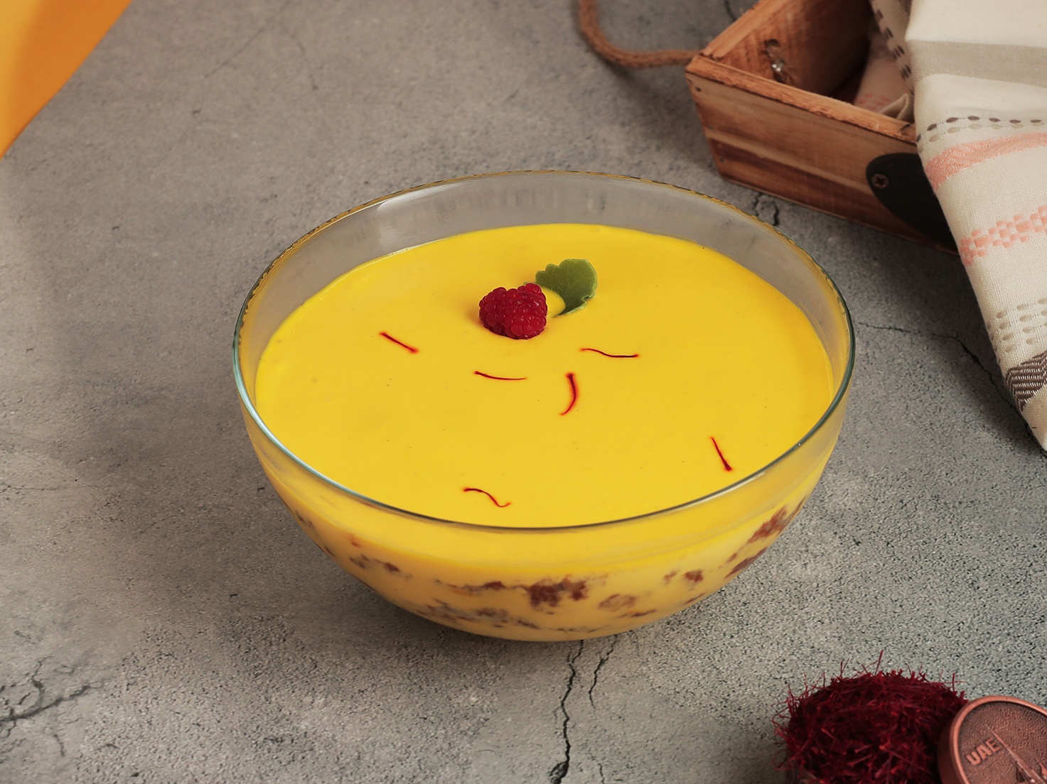 A delicate dessert bowl infused with the flavor of saffron.